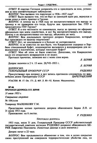 Протокол допроса Л.П. Берия. 31 июля 1953 г. // РГАСПИ. Ф. 17. Оп. 171. Д. 465. Л. 117—123. Копия. Машинопись.