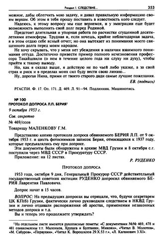 Протокол допроса Л.П. Берия. 9 октября 1953 г. // РГАСПИ. Ф. 17. Оп. 171. Д. 152. Л. 152—159. Копия. Машинопись.