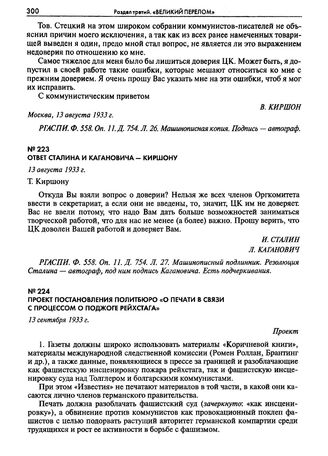 Ответ Сталина и Кагановича - Киршону. 13 августа 1933 г.