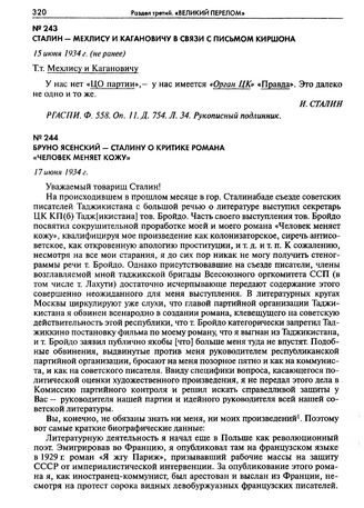 Сталин - Мехлису и Кагановичу в связи с письмом Киршона. 15 июня 1934 г. (не ранее) // РГАСПИ. Ф. 558. Оп. 11. Д. 754. Л. 34. Рукописный подлинник.