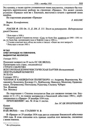 Ответ Енукидзе на обвинения, выдвинутые Мехлисом. 8 января 1935 г. // РГАСПИ. Ф. 558. Оп. 11. Д. 728. Л. 108—124. Ротапринтный текст.