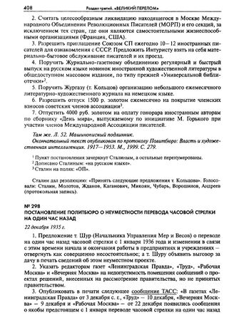 Постановление Политбюро о неуместности перевода часовой стрелки на один час назад. 22 декабря 1935 г.