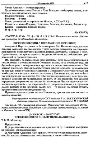 Кржижановский о предложении Наживина // РГАСПИ. Ф. 17. Оп. 163. Д. 1109. Л. 138. Рукописный подлинник.