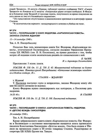 Записка Сталина Жданову. 14 сентября 1940 г. // РГАСПИ. Ф. 558. Оп. 11. Д. 730. Л. 188. Рукописный подлинник.
