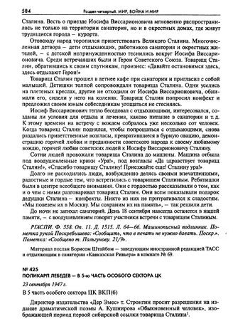 Поликарп Лебедев - в 5-ю часть особого сектора ЦК. 23 сентября 1947 г. // РГАСПИ. Ф. 558. Оп. 11. Д. 1515. Л. 67. Машинописный подлинник. Подпись — автограф.
