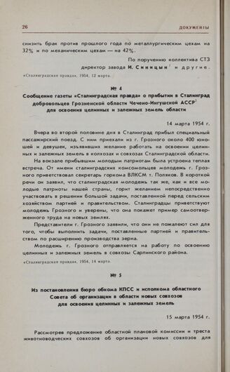 Из постановления бюро обкома КПСС и исполкома областного Совета об организации в области новых совхозов для освоения целинных и залежных земель. 15 марта 1954 г.