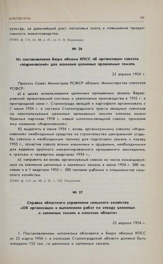 Главная Волгоградская областная парторганизация в борьбе за подъем целины. ... Документы Справка областного управления сельского хозяйства «Об организации и...