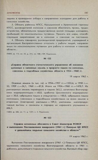 Главная Волгоградская областная парторганизация в борьбе за подъем целины. ... Документы Справка областного статистического управления об освоении целинных ...