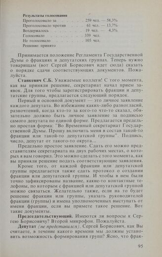 Заседание Государственной Думы. 11 января 1994 г. Принятие положений Временного регламента Государственной Думы о фракциях и депутатских групп