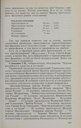 Заседание Государственной Думы. 13 января 1994 г. Сообщение председателя Временного секретариата Государственной Думы Станкевича С.Б. о предварительных результатах регистрации депутатских объединений