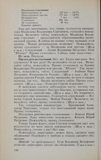 Заседание Государственной Думы. 13 января 1994 г. Рейтинговое голосование по кандидатурам на должность Председателя Государственной Думы