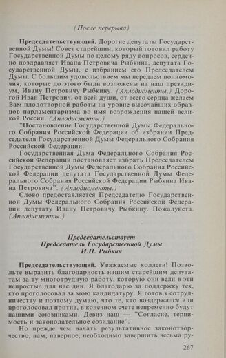 Заседание Государственной Думы. 14 января 1994 г. Принятие постановления Государственной Думы «Об избрании Председателя Государственной Думы Федерального Собрания Российской Федерации»