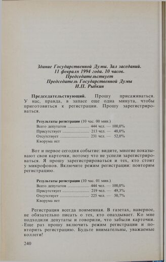 Заседание Государственной Думы. 11 февраля 1994 г. Обсуждение и принятие повестки дня заседания