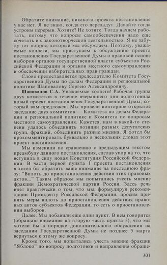Заседание Государственной Думы. 11 февраля 1994 г. О проекте постановления Государственной Думы о правовой основе выборов органов государственной власти субъектов Российской Федерации и органов местного самоуправления и об обеспечении избирательных прав граждан. Доклад председателя Комитета Государственной Думы по делам Федерации и региональной политике Шаповалова С.А.