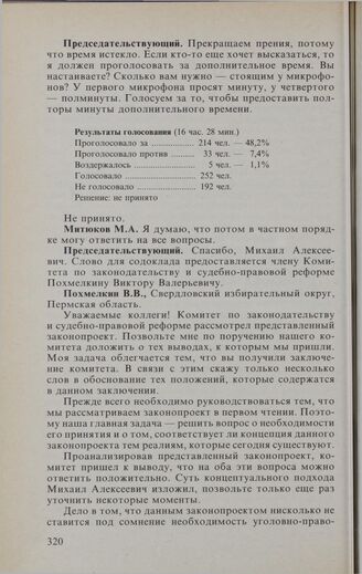 Заседание Государственной Думы. 11 февраля 1994 г. О проекте федерального закона о внесении изменений и дополнений в Уголовный кодекс РСФСР и Уголовно-процессуальный кодекс РСФСР. Содоклад члена Комитета Государственной Думы по законодательству и судебно-правовой реформе Похмелкина В.В.