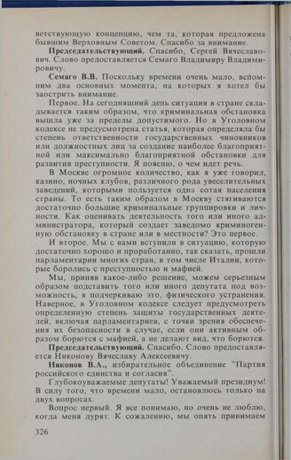 Заседание Государственной Думы. 11 февраля 1994 г. О проекте федерального закона о внесении изменений и дополнений в Уголовный кодекс РСФСР и Уголовно-процессуальный кодекс РСФСР. Выступления в прениях. Семаго В.В.