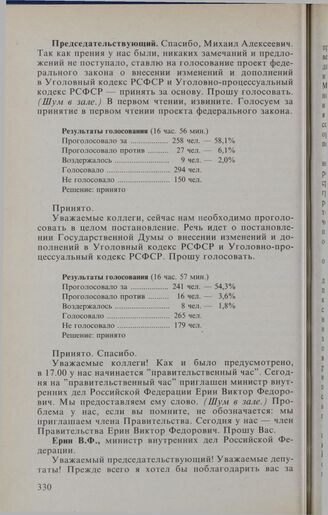 Заседание Государственной Думы. 11 февраля 1994 г. О проекте федерального закона о внесении изменений и дополнений в Уголовный кодекс РСФСР и Уголовно-процессуальный кодекс РСФСР. Принятие постановления