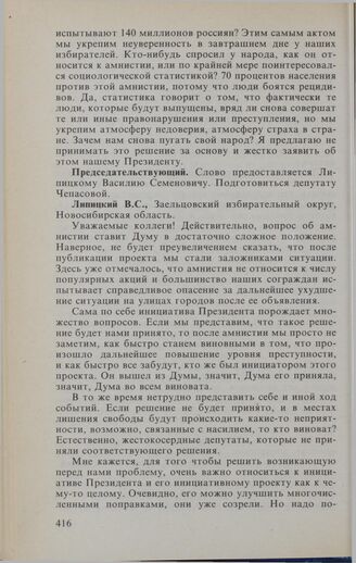Заседание Государственной Думы. 16 февраля 1994 г. О проекте постановления Государственной Думы об амнистии в связи с принятием Конституции Российской Федерации. Продолжение выступлений в прениях. Липицкий В.С.