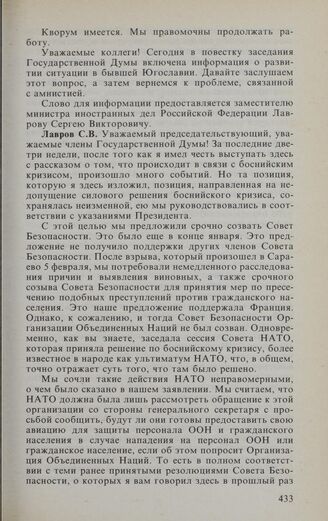 Заседание Государственной Думы. 16 февраля 1994 г. Информация заместителя министра иностранных дел Российской Федерации Лаврова С.В. о развитии ситуации в бывшей Югославии