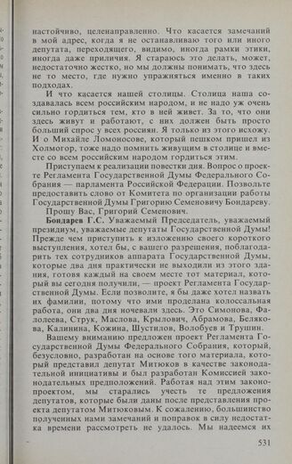 Заседание Государственной Думы. 17 февраля 1994 г. О проекте Регламента Государственной Думы Федерального Собрания — парламента Российской Федерации. Доклад члена Комитета Государственной Думы по организации работы Государственной Думы Бондарева Г...
