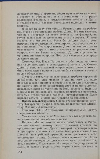 Заседание Государственной Думы. 17 февраля 1994 г. О проекте Регламента Государственной Думы Федерального Собрания — парламента Российской Федерации. Выступления в прениях. Токарева Т.П.