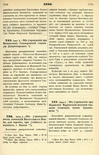 1880. Июня 4. — Об учреждении при Московском Университете стипендии Добротворского. Высочайше утвержденный всеподданнейший доклад