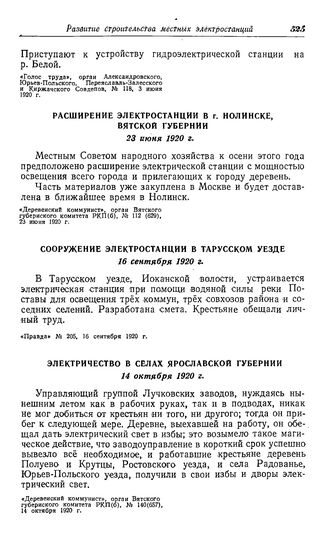 Электричество в селах Ярославской губернии. 14 октября 1920 г. // «Деревенский коммунист», орган Вятского губернского комитета РКП(б), № 140(657), 14 октября 1920 г.