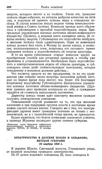Электричество в деревне Шукли и Завьялово, Вятской губернии. 25 ноября 1920 г.
