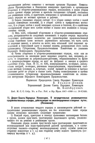Декрет Совета Народных Комиссаров. О заградительных реквизиционных продовольственных отрядах, действующих на железнодорожных и водных путях. (Положение). 4 августа 1918 года // Распубликован в № 166 Изв. В.Ц.И.К. от 6 августа 1918 г. Биб. И.С.С. Соб. Уз. и Расп. Раб. и Кр. Прав. 1917—1918 г.г. № 57/634.
