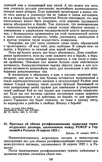 Протокол об обмене ратификационными грамотами германо-русского договора, заключенного между РСФСР и Германией в Рапалло 16 апреля 1922 г. 31 января 1923 г. // Печат. по АВП СССР.