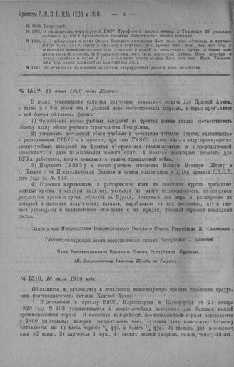 Приказ Революционного Военного Совета Республики № 1310. Приказ РВСР и НКЗ о правилах снабжения противо-цынготным питанием Красной армии в доп. к пр. РВСР 1920 г. № 103. 16 июля 1920 г.
