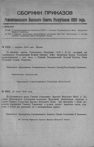 Сборник приказов Революционного Военного Совета Республики. 1920. № 1003-1664. — М., 1920.
