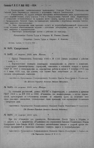Приказ Революционного Военного Совета Республики № 1653. О сохранении военнослужащими права получения всех видов денежного довольствия при перемещении их по собственному желанию, если перемещение согласовано с интересами дела (приказы РВСР 1920 г. № 950 и 1356). 24 августа 1920 г. (По Штатно-Тарифной Комиссии Военного Ведомства)