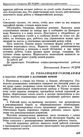 Поронинское совещание ЦК РСДРП с партийными работниками. Поронин. 23 сентября — 1 октября (6 — 14 октября) 1913 г. II. Резолюции совещания. О задачах агитации в настоящий момент // Печатается по тексту Полного собрания сочинений В.И. Ленина, т. 24, с. 49 — 61 и тексту брошюры «Извещение и резолюции летнего 1913 г. совещания ЦК РСДРП с партийными работниками», изд. ЦК, 1913 и копии гектографированного листка, хранящегося в ЦПА ИМЛ, ф. 2, оп. 1, д. 3118.