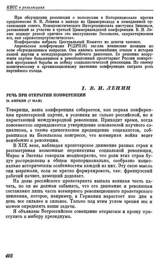 Седьмая (апрельская) Всероссийская конференция РСДРП(б). Петроград. 24 — 29 апреля (7 — 12 мая) 1917 г. I. В.И. Ленин. Речь при открытии конференции // Печатается по тексту Полного собрания сочинений В И. Ленина, т. 31, с. 341, 342 — 358, 361 — 363, 364 — 367, 372 — 375, 377 — 380, 387 — 400, 403 — 409, 410 — 412, 414 — 415, 416 — 422, 425 — 431, 439 — 440, 443 — 446, 449 — 452, 454 — 457 и тексту книги: Седьмая (Апрельская) Всероссийская конференция РСДРП (большевиков), Петроградская общегородская конференция РСДРП (большевиков). Апрель 1917 года. Протоколы. М., 1958.