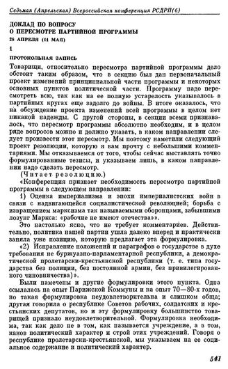 Седьмая (апрельская) Всероссийская конференция РСДРП(б). Петроград. 24 — 29 апреля (7 — 12 мая) 1917 г. III. Выступления В.И. Ленина на конференции. Доклад по вопросу о пересмотре партийной программы // Печатается по тексту Полного собрания сочинений В И. Ленина, т. 31, с. 341, 342 — 358, 361 — 363, 364 — 367, 372 — 375, 377 — 380, 387 — 400, 403 — 409, 410 — 412, 414 — 415, 416 — 422, 425 — 431, 439 — 440, 443 — 446, 449 — 452, 454 — 457 и тексту книги: Седьмая (Апрельская) Всероссийская конференция РСДРП (большевиков), Петроградская общегородская конференция РСДРП (большевиков). Апрель 1917 года. Протоколы. М., 1958.