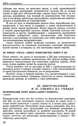 Седьмой экстренный съезд РКП(б). Петроград; 6 — 8 марта 1918 г. II. Выступления В.И. Ленина на съезде. Политический отчет Центрального Комитета. 7 марта // Резолюция по отчету Центрального Комитета печатается по тексту книги: Седьмой экстренный съезд РКП(б). Стенографический отчет. М., 1962, с. 175; остальные резолюции съезда и выступления В.И. Ленина — по тексту Полного собрания сочинений В.И. Ленина. т. 36, с. 35 — 36, 40, 58 — 59, 69, 3 — 26, 43 — 57.