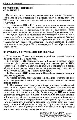 Пятнадцатый съезд ВКП(б). Москва. 2—19 декабря 1927 г. Резолюции и постановления съезда. По отдельным организационным вопросам // Печатается по тексту книги: Пятнадцатый съезд ВКП(б). Декабрь 1927 года. Стенографический отчет: В 2-х ч. М., 1962, ч. 2, с. 1429—1470.