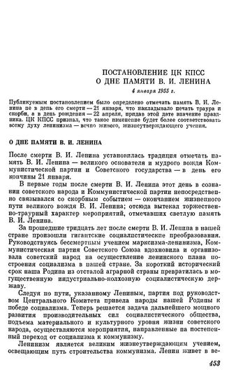 Постановление ЦК КПСС. О дне памяти В. И. Ленина. 4 января 1955 г. // Печатается по тексту газеты «Правда», 1955, 11 января, № 11.