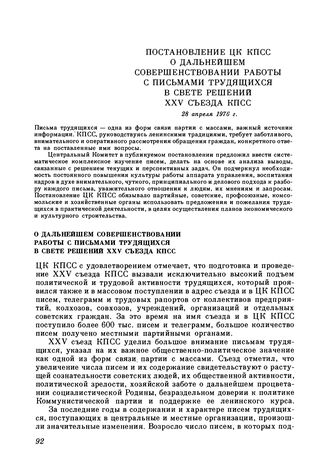 Постановление ЦК КПСС. О дальнейшем совершенствовании работы с письмами трудящихся в свете решений XXV съезда КПСС. 28 апреля 1976 г.