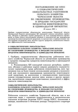 Постановление ЦК КПСС О социалистических обязательствах работников сельского хозяйства Черкасской области по увеличению производства и продажи государству продуктов животноводства в одиннадцатой пятилетке. 28 апреля 1981 г.