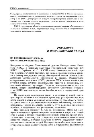 Двадцать седьмой съезд КПСС. Москва. 25 февраля — 6 марта 1986 г. Резолюции и постановления съезда. По Политическому докладу Центрального Комитета КПСС // Печатается по тексту книги: XXVII съезд Коммунистической партии Советского Союза. 25 февраля — 6 марта 1986 года. Стенографический отчет: В 3 т. М., 1986, т. 1—2.