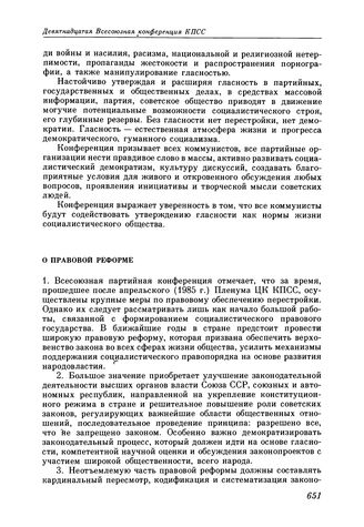 Девятнадцатая Всесоюзная конференция коммунистической партии Советского Союза. Москва. 28 июня — 1 июля 1988 г. Резолюции конференции. О правовой реформе