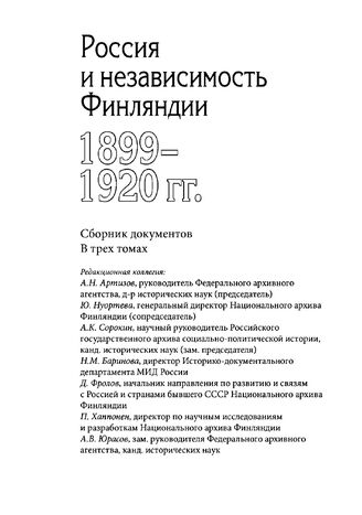 Россия и независимость Финляндии, 1899-1920 гг. Т. 1. От автономии к противостоянию, 1899-1908 гг.