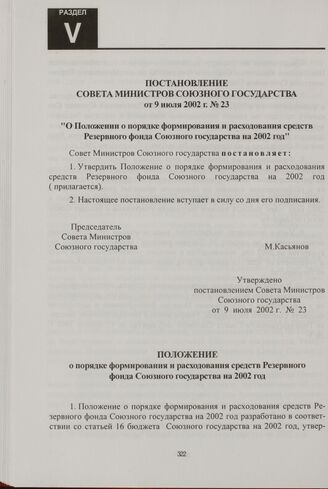 Постановление Совета Министров Союзного государства от 9 июля 2002 г. № 23 "О Положении о порядке формирования и расходования средств Резервного фонда Союзного государства на 2002 год"