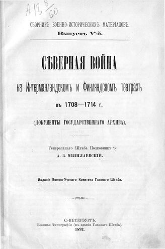 Сборник военно-исторических материалов. Вып. V-й. Северная война на Ингерманландском и Финляндском театрах в 1708-1714 г.