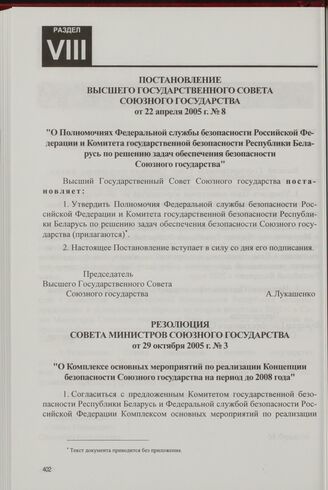 Сборник нормативных правовых документов Союзного государства за 2005 год. — М.; Минск, 2006.