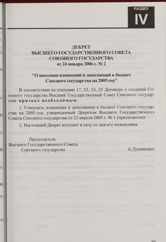 Декрет Высшего Государственного Совета Союзного государства от 24 января 2006 г. № 2 "О внесении изменений и дополнений в бюджет Союзного государства на 2005 год"