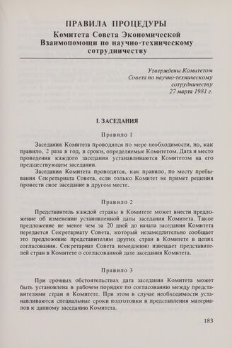 Правила процедуры Комитета Совета Экономической Взаимопомощи по научно-техническому сотрудничеству. Утверждены Комитетом Совета по научно-техническому сотрудничеству 27 марта 1981 г.