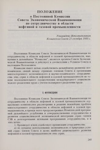 Положение о Постоянной Комиссии Совета Экономической Взаимопомощи по сотрудничеству в области нефтяной и газовой промышленности. Утверждено Исполнительным Комитетом Совета 25 октября 1980 г.